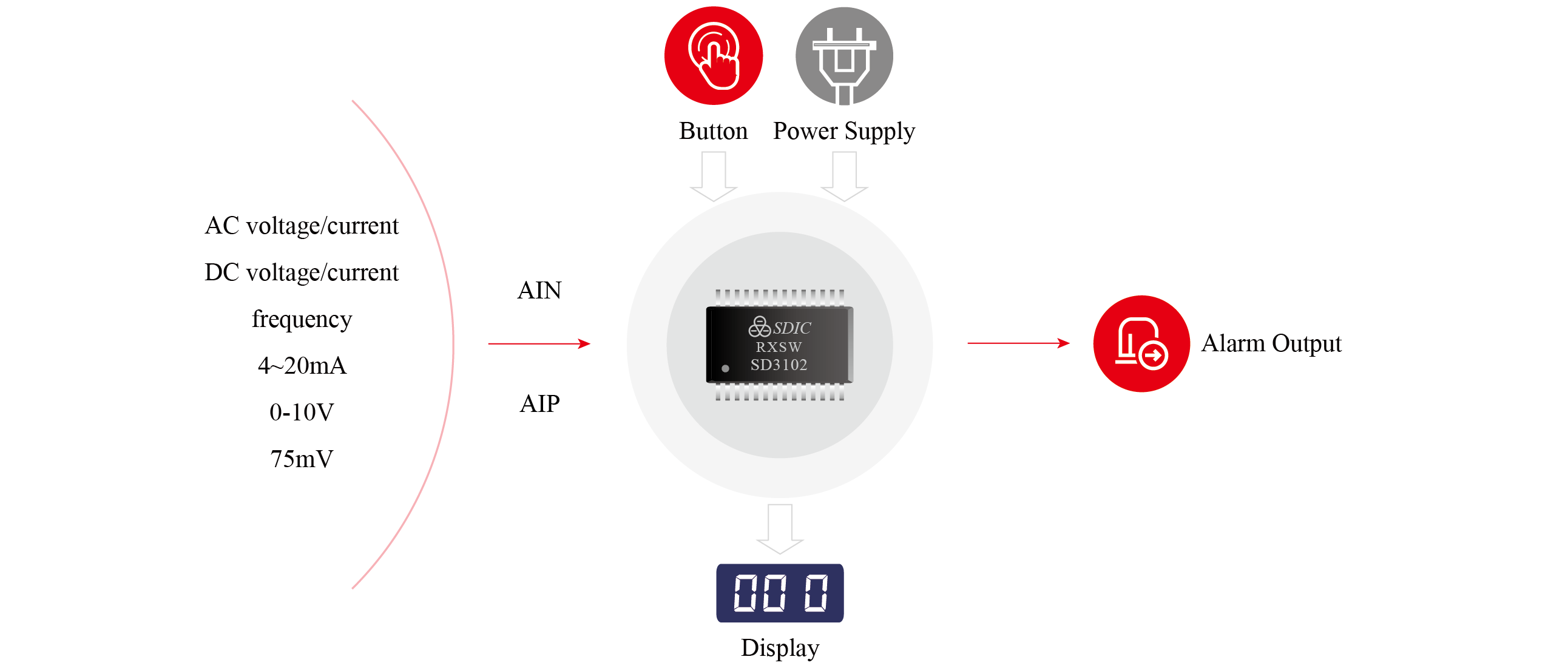 This product series is designed for digital display header. The IC integrated T-RMS calculator, display driver and DSP unit and it is a solution in the application of AC and DC meter. It can realize high precision measurement of industrial electrical signals such as AC and DC voltage, AC and DC current, frequency, and expansion of the alarm output function. The internal integration of advanced calibration algorithms can save the calibration time when the measurement accuracy is met. The calibration coefficients can be stored for saving external memory.