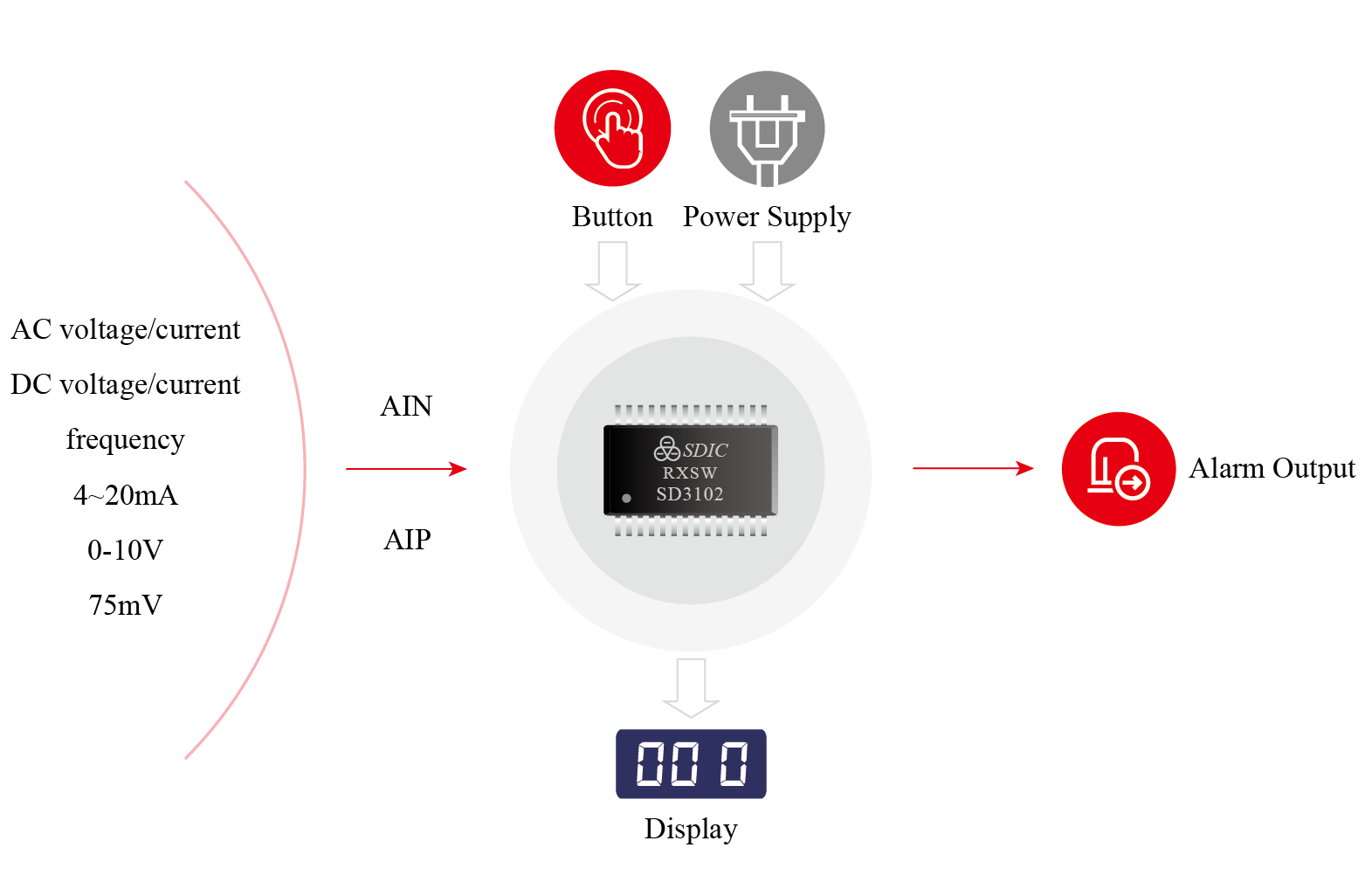 This product series is designed for digital display header. The IC integrated T-RMS calculator, display driver and DSP unit and it is a solution in the application of AC and DC meter. It can realize high precision measurement of industrial electrical signals such as AC and DC voltage, AC and DC current, frequency, and expansion of the alarm output function. The internal integration of advanced calibration algorithms can save the calibration time when the measurement accuracy is met. The calibration coefficients can be stored for saving external memory.