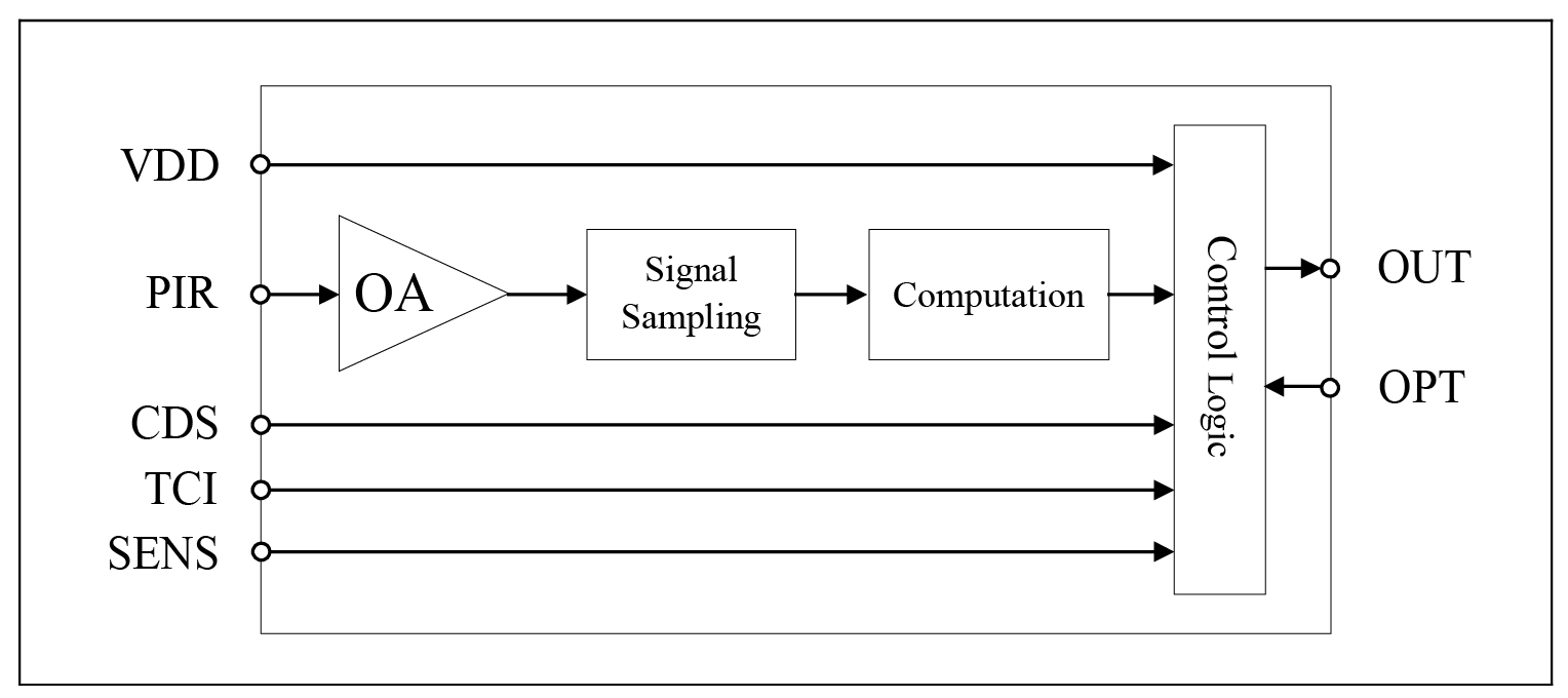 SD4101R is an integrated PIR (Passive Infra-Red) controller IC with very low power consumption. Its internal analog and digital mixed signal design architecture results in very stable operation under various environment conditions.